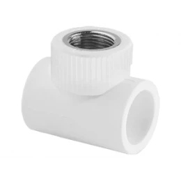 Тройник Ø 25 мм с накидной гайкой (ВР) 1", PP-R - латунь, цвет белый, TEBO